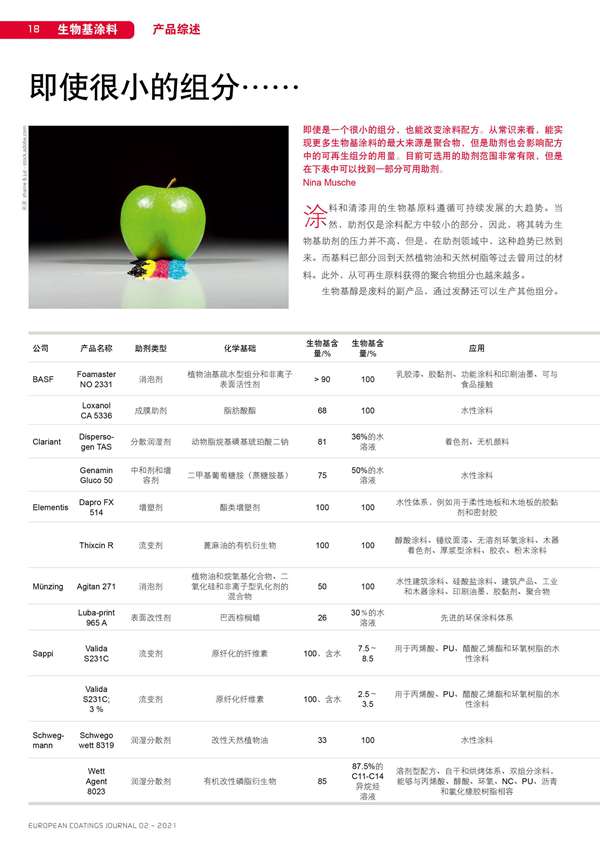 專題:樹脂和助劑 技術論文:棄用包裝涂料中的聚四氟乙烯組分 鋅片可以作為鋅粉的可持續(xù)發(fā)展替代品 市場報告:涂料助劑市場逐趨穩(wěn)定
