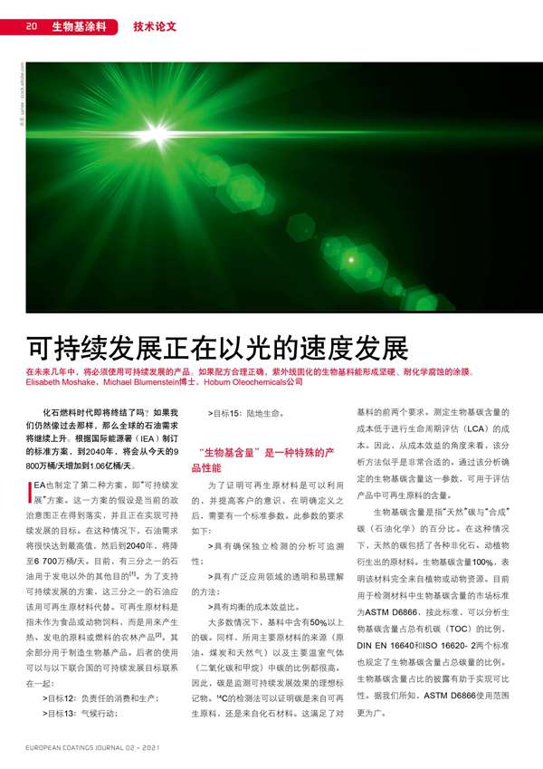 專題:生物基涂料 為涂料配方設(shè)計(jì)師合成一種新型固化劑 將光引發(fā)劑接枝到丙烯酸酯上 市場(chǎng)報(bào)告:生物基涂料市場(chǎng)正處于拐點(diǎn)