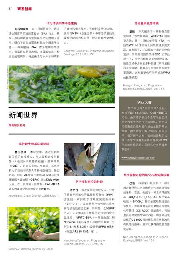 專題:樹脂和助劑 技術(shù)論文:棄用包裝涂料中的聚四氟乙烯組分 鋅片可以作為鋅粉的可持續(xù)發(fā)展替代品 市場報(bào)告:涂料助劑市場逐趨穩(wěn)定