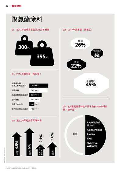 專題:功能涂料 環氧涂料:用于低排放地坪的固化劑 防涂鴉聚氨酯應用的有機硅助劑 市場報告:性能高,銷量大