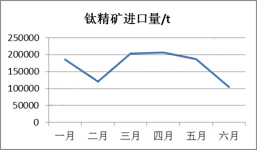 2014上半年累計進(jìn)口鈦精礦1006694t,同比減少218103t,減幅為17.8%。