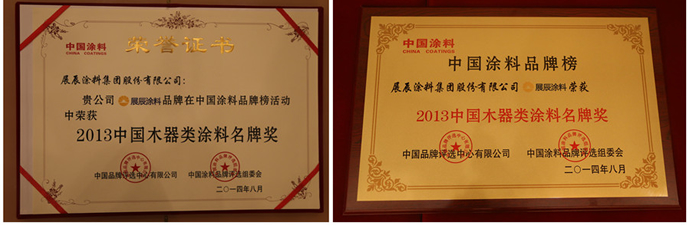 展辰涂料榮獲“2013中國木器類涂料名牌獎”