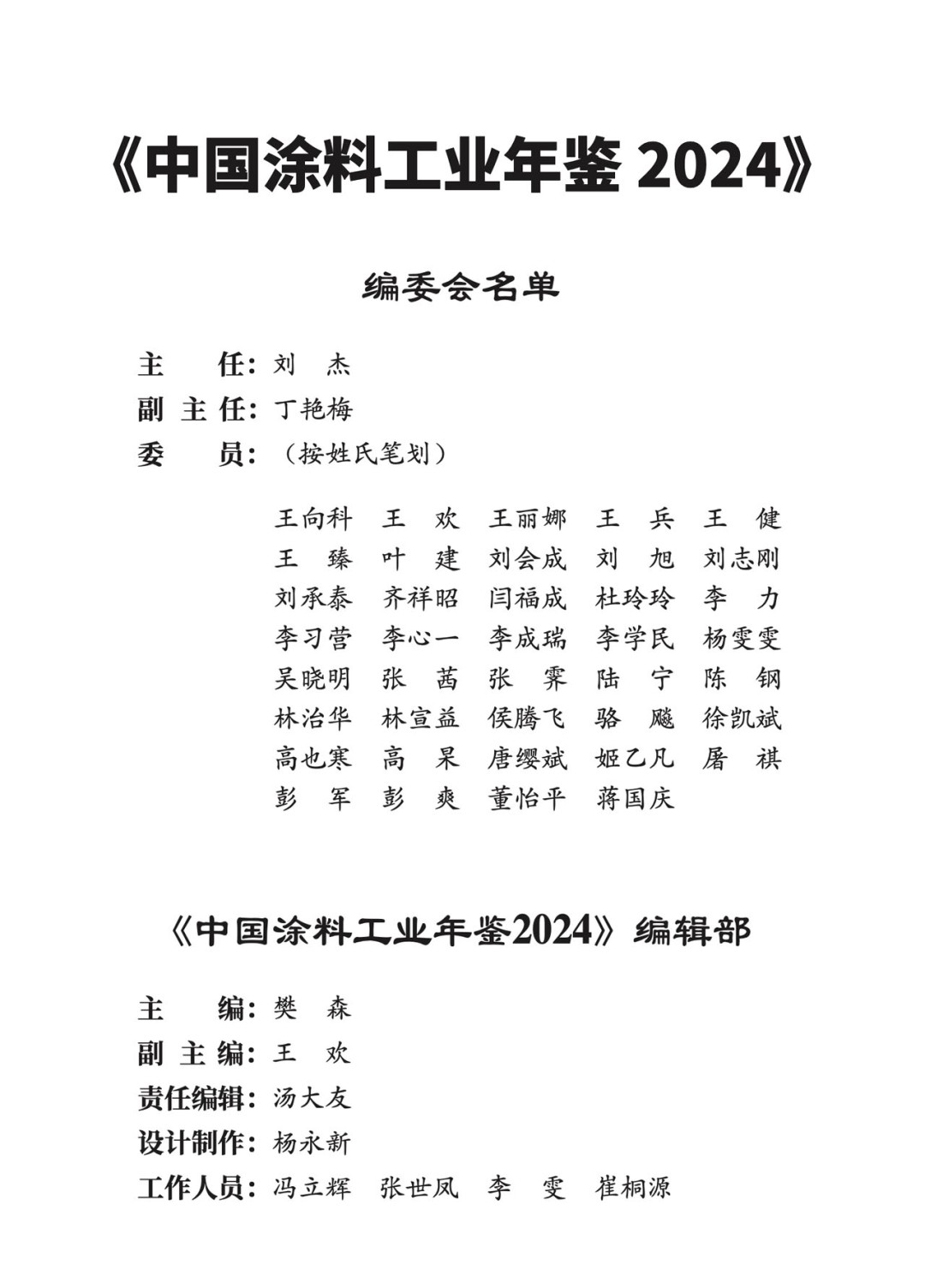 《中國涂料工業年鑒2024》的編撰完成得到了業內專家和相關企業的大力支持。在此對所有關心和幫助年鑒順利出版的各界人士謹表謝意!編撰中難免有不足之處,請不吝指正!