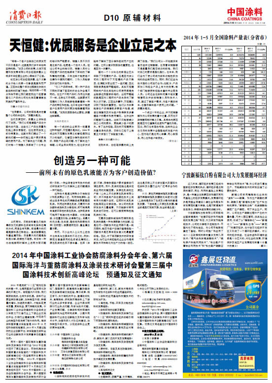 《中國涂料報》(電子版)的一切內容(包括但不限于文字、圖片、PDF、圖表、標志、標識、商標、版面設計、專欄目錄與名稱、內容分類標準以及為讀者提供的任何信息)僅供中國涂料信息網讀者閱讀、學習研究使用,未經中國涂料雜志社有限公司及/或相關權利人書面授權,任何單位及個人不得將《中國涂料報》(電子版)所登載、發(fā)布的內容用于商業(yè)性目的,包括但不限于轉載、復制、發(fā)行、制作光盤、數(shù)據(jù)庫、觸摸展示等行為方式,或將之在非本站所屬的服務器上作鏡像。否則,中國涂料雜志社有限公司將采取包括但不限于網上公示、向有關部門舉報、訴訟等一切合法手段,追究侵權者的法律責任。