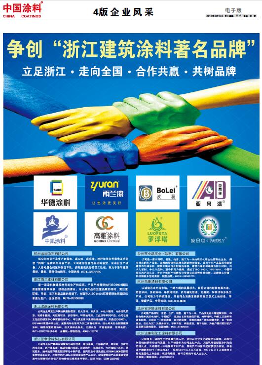 《中國涂料報》(電子版)的一切內容(包括但不限于文字、圖片、PDF、圖表、標志、標識、商標、版面設計、專欄目錄與名稱、內容分類標準以及為讀者提供的任何信息)僅供中國涂料信息網讀者閱讀、學習研究使用,未經中國涂料雜志社有限公司及/或相關權利人書面授權,任何單位及個人不得將《中國涂料報》(電子版)所登載、發(fā)布的內容用于商業(yè)性目的,包括但不限于轉載、復制、發(fā)行、制作光盤、數據庫、觸摸展示等行為方式,或將之在非本站所屬的服務器上作鏡像。否則,中國涂料雜志社有限公司將采取包括但不限于網上公示、向有關部門舉報、訴訟等一切合法手段,追究侵權者的法律責任。