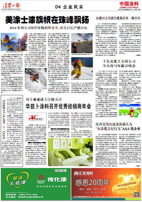 《中國涂料報》(電子版)的一切內容(包括但不限于文字、圖片、PDF、圖表、標志、標識、商標、版面設計、專欄目錄與名稱、內容分類標準以及為讀者提供的任何信息)僅供中國涂料信息網讀者閱讀、學習研究使用,未經中國涂料雜志社有限公司及/或相關權利人書面授權,任何單位及個人不得將《中國涂料報》(電子版)所登載、發布的內容用于商業性目的,包括但不限于轉載、復制、發行、制作光盤、數據庫、觸摸展示等行為方式,或將之在非本站所屬的服務器上作鏡像。否則,中國涂料雜志社有限公司將采取包括但不限于網上公示、向有關部門舉報、訴訟等一切合法手段,追究侵權者的法律責任。