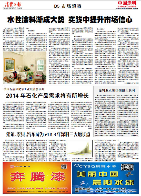 《中國涂料報》(電子版)的一切內容(包括但不限于文字、圖片、PDF、圖表、標志、標識、商標、版面設計、專欄目錄與名稱、內容分類標準以及為讀者提供的任何信息)僅供中國涂料信息網讀者閱讀、學習研究使用,未經中國涂料雜志社有限公司及/或相關權利人書面授權,任何單位及個人不得將《中國涂料報》(電子版)所登載、發布的內容用于商業性目的,包括但不限于轉載、復制、發行、制作光盤、數據庫、觸摸展示等行為方式,或將之在非本站所屬的服務器上作鏡像。否則,中國涂料雜志社有限公司將采取包括但不限于網上公示、向有關部門舉報、訴訟等一切合法手段,追究侵權者的法律責任。